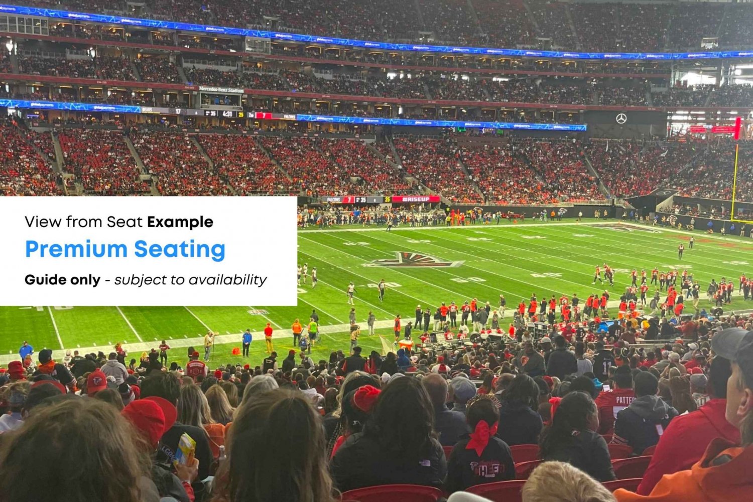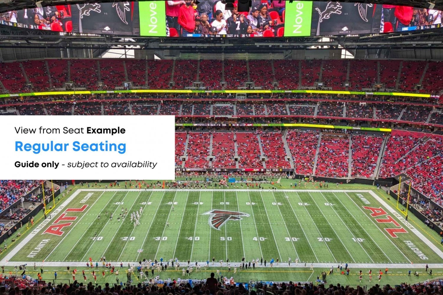 See the Atlanta Falcons play an American football game at Mercedes Benz Stadium in downtown Atlanta. Enjoy assigned seating with your game ticket and be there live to see the thrilling action on the field as the biggest stars in the NFL put on an exciting show.